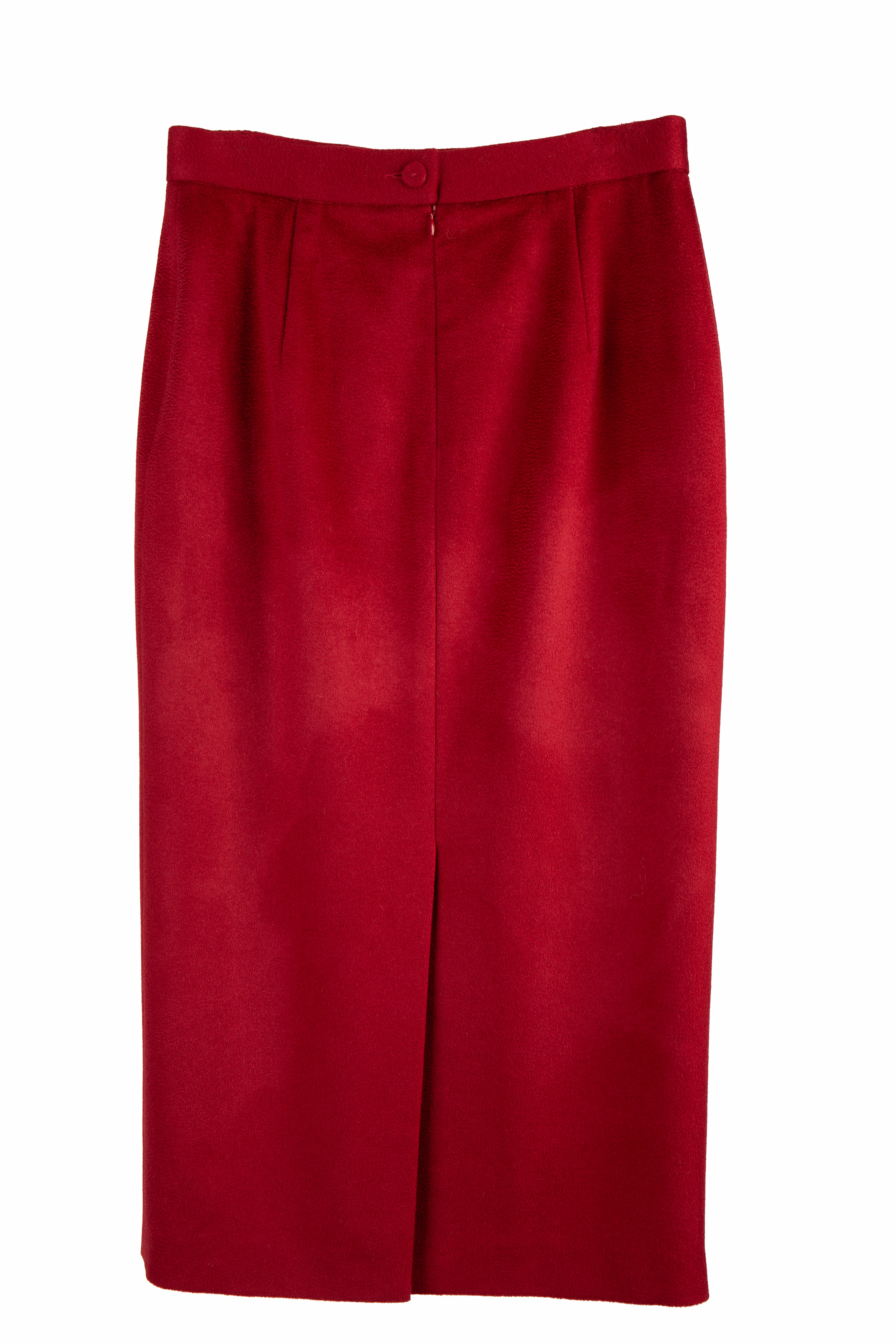 Elegants taisna piegriezuma svārku modelis no izsmalcināta kašmira piesātināti sarkanā tonī, ar greznu zīda oderi. Klasisks, klusināti sievišķīgs siluets, kas akcentē auguma proporcijas un viegli ieplūst garderobē kā daudzpusīgs pamatelements. Lieliski sader gan ar žaketi komplektā, gan ar vieglu blūzi vai adījumu — harmoniska izvēle izsmalcinātai ikdienai vai formāliem notikumiem.